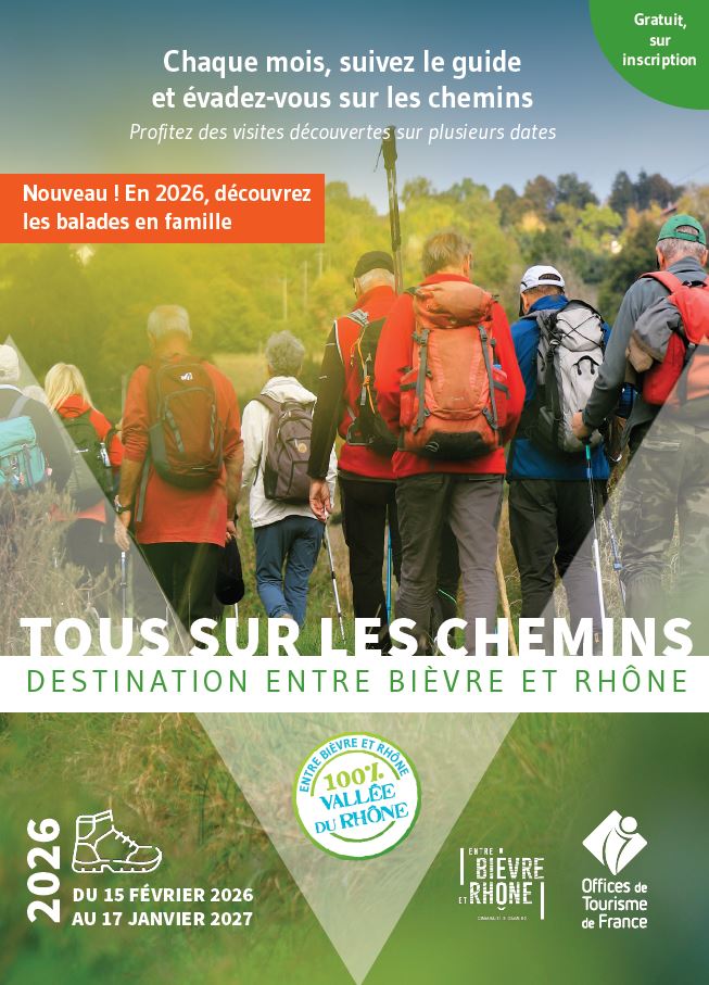 Chaque mois et pendant toute l’année, les amateurs de randonnées peuvent découvrir les sentiers d’Entre Bièvre et Rhône. Notre guide-accompagnateur leur fait découvrir les petits et grands chemins qui forgent les paysages. Souvent associé à une visite d’exploitation ou d’un site touristique, ce sont aussi des sorties faites pour les curieux !